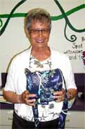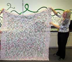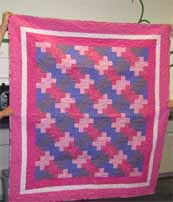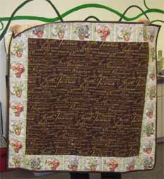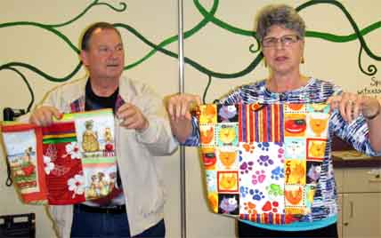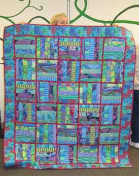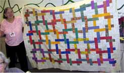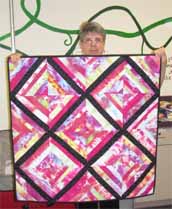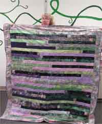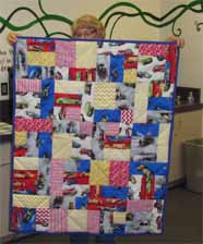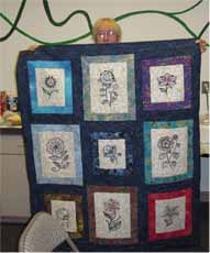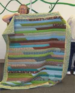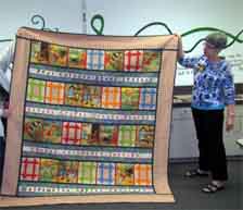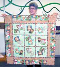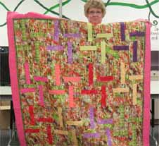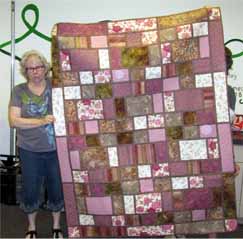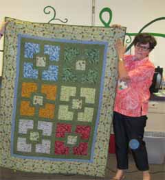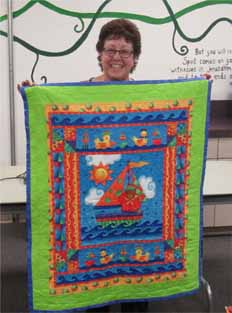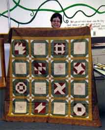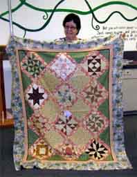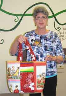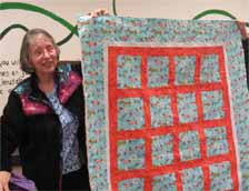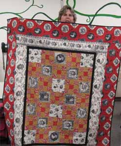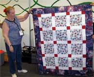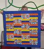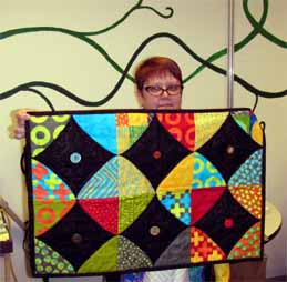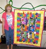 Kathy S with baby quilt as you go,alphabet quilt and 3 tote bags. |