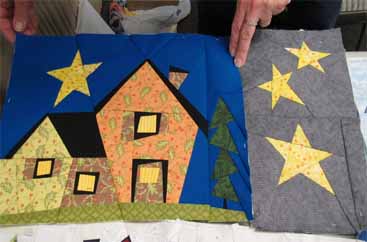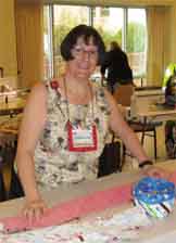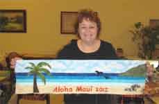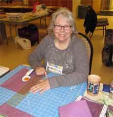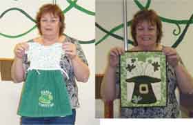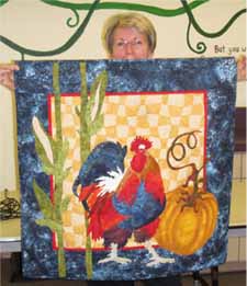Gaylynn with 1 hour tablerunner, thread play 4 seasons wallhangings and small tote. |