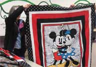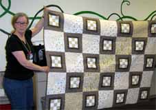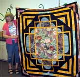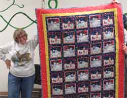 Nancy C with Jerry F's quilt and Day of the Dead Quilt |