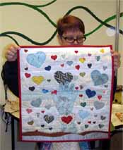Kathy D with Hearts in Hand and Stained Glass wallhanging quilts |