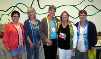 Malene E, Juli N, Kathy S, Gaylynne T and Kathy D with their sweatshirts. |